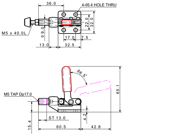 100 106 87˚ M5 x 40.0L 13 Flange