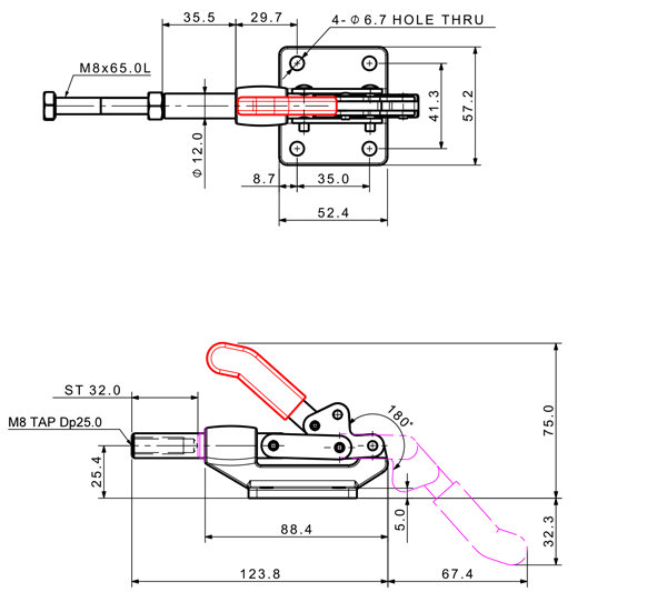 230 360 180˚ M8 x 65.0L 32 Flange