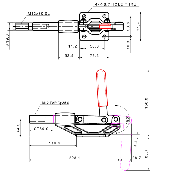 700 1420 180˚ M12 x 80.0L 60 Flange