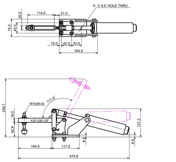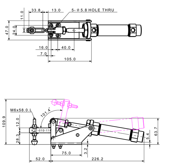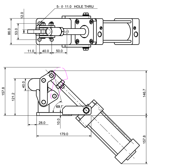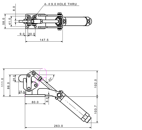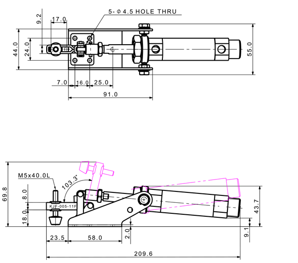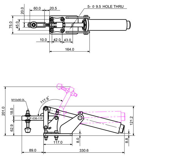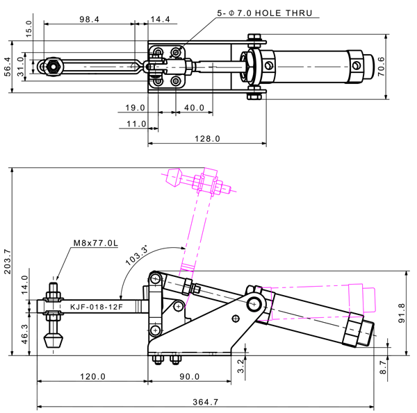 180 1170 103 ˚ 81 PT 1/8 ø32 x 50(ST)