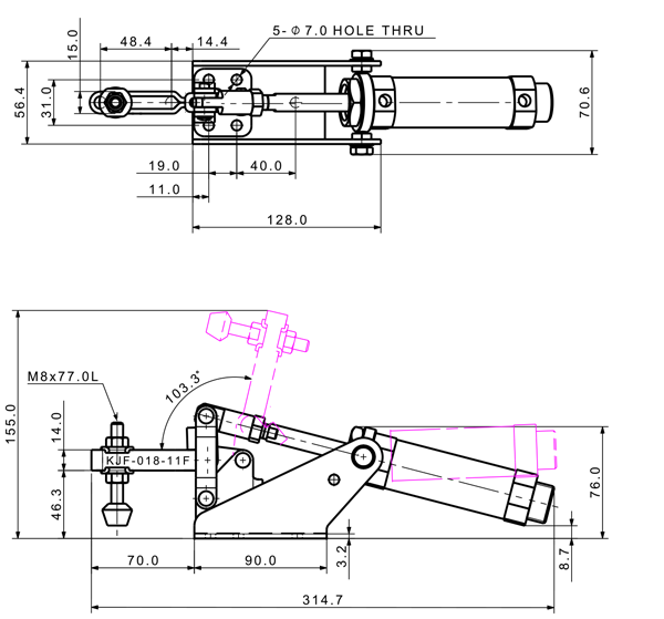 180 1140 103 ˚ 48 PT 1/8 ø32 x 50(ST)
