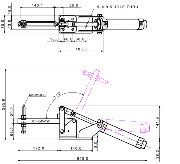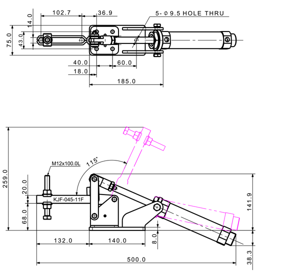 450 3180 115 ˚ 103 PT 1/4 ø40 x 100(ST)
