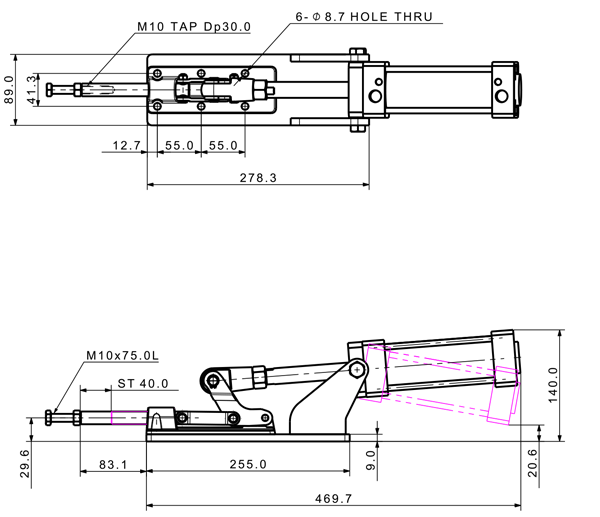 Holding Capacity(kgf) Weight(g) Arm Move Spindle Adjust.(mm) Air Port Size Cylinder Size 2D 3D PDF 주문