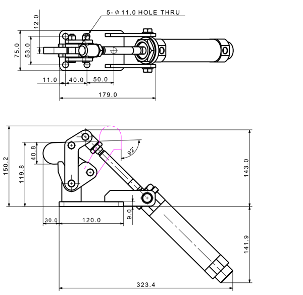450 3230 143 ˚ 143 PT 1/4 ø40 x 100(ST)